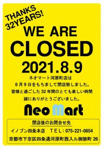 ネオマート河原町店は2021年8月9日をもちまして閉店致しました。