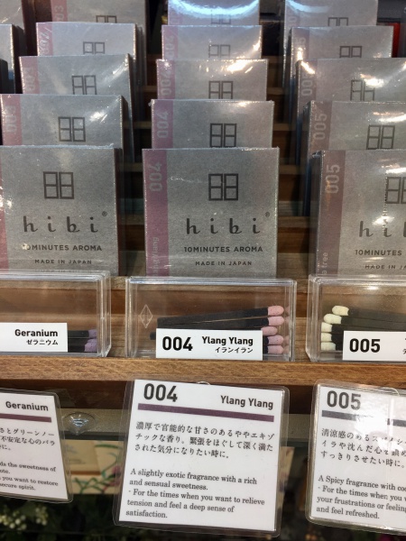こちらマット付きのアロマで、火をつけて消えるのを待ち、専用のマットに置いていただき、約10分間香りと自分時間を楽しんでいただけます。手前の定番レギュラーサイズは全種¥650+税となっております。
