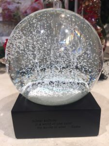 中の粉はラメが混じっており、キラキラと輝きます。また、ほかの季節のものより粒が大きいのでゆっくりと舞う粉雪をイメージさせてくれてとても幻想的です。