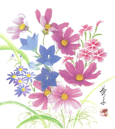 今月のテーマは【秋草・コスモスを描く】です。