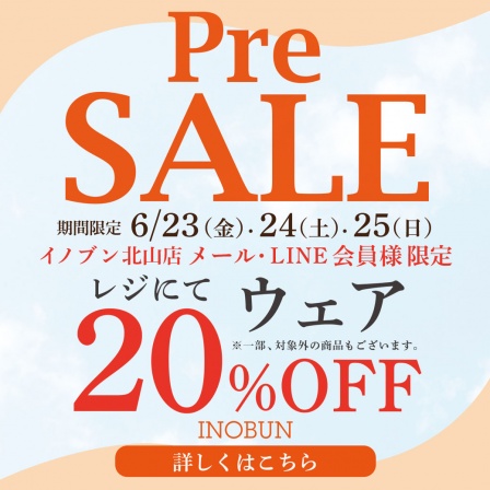 イノブン北山店 会員様限定!1Fフロア PRE SALEのお知らせ♪