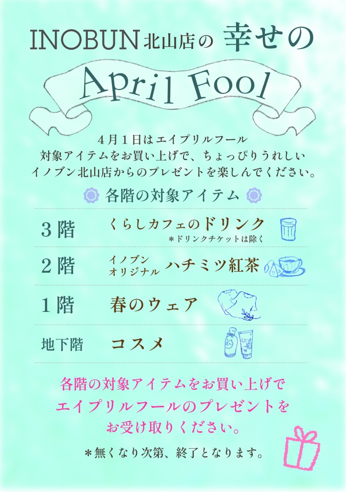 エイプリルフールイベントとして、対象の商品をお買い上げで、プレゼントをご用意しました♪