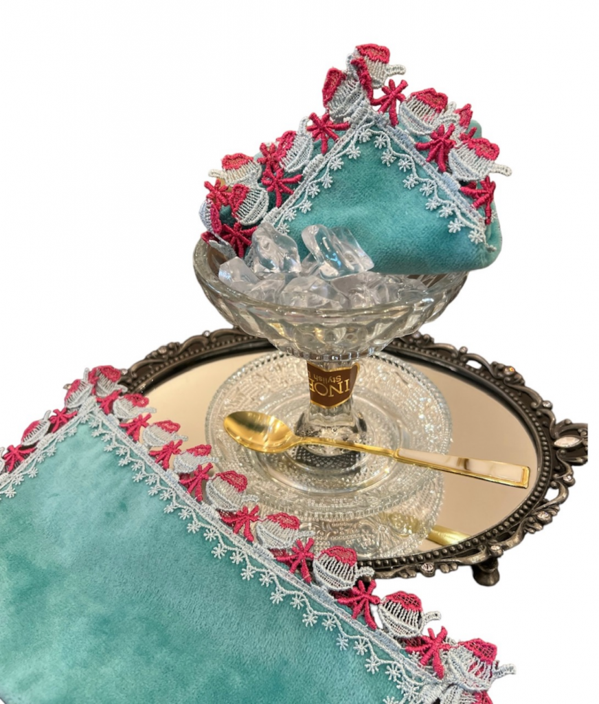 いちごシロップのかかった美味しそうなかき氷の間をよーく見ると「氷」文字と、その下には氷の結晶が…♡繊細な美しさと、チャーミングな発想が沢山詰まったハンカチ達です。