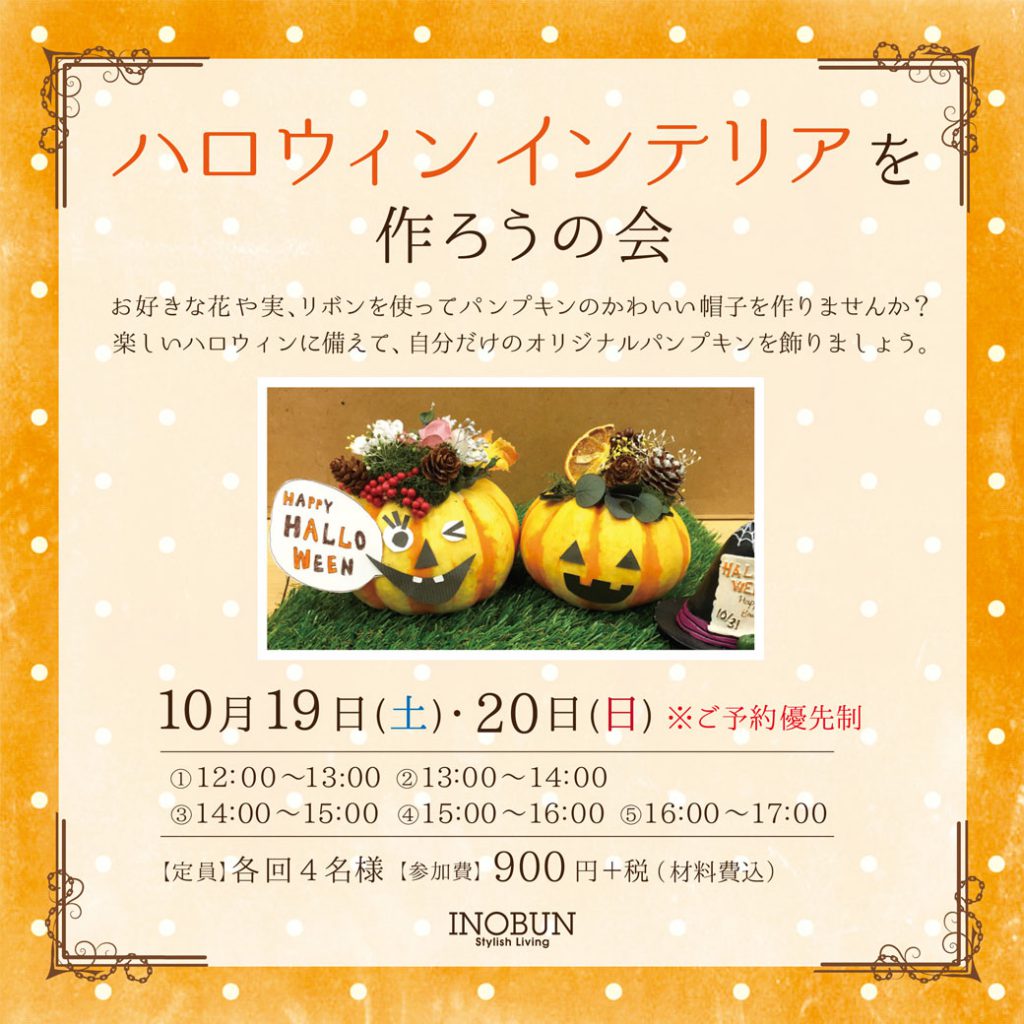 今日は10/19(土)・10/20(日)にあるハロウィンワークショップイベントをお知らせ致します!!
