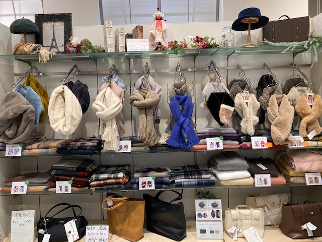 桂川店ではご紹介した以外にもストールやスヌードなどがございますので、イオンモール桂川店にお越しの際はイノブン桂川店も覗いて見てください♪