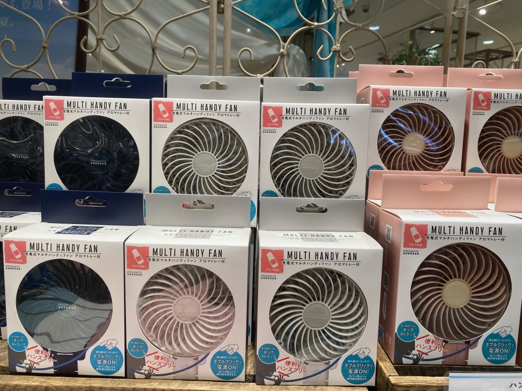 現在イノブン桂川店では、店頭にて様々なハンディファンを取り扱っております。