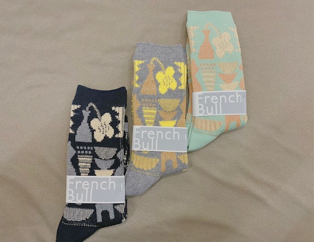 インパクトのある大きな花柄がポイントのジャガード編みのソックスです。