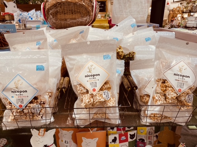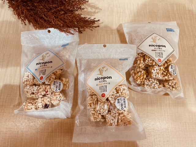 こちらのにこぽん、去年までは円柱型のパッケージのものを置いておりました。手に取って頂いたお客様も多いと思います!