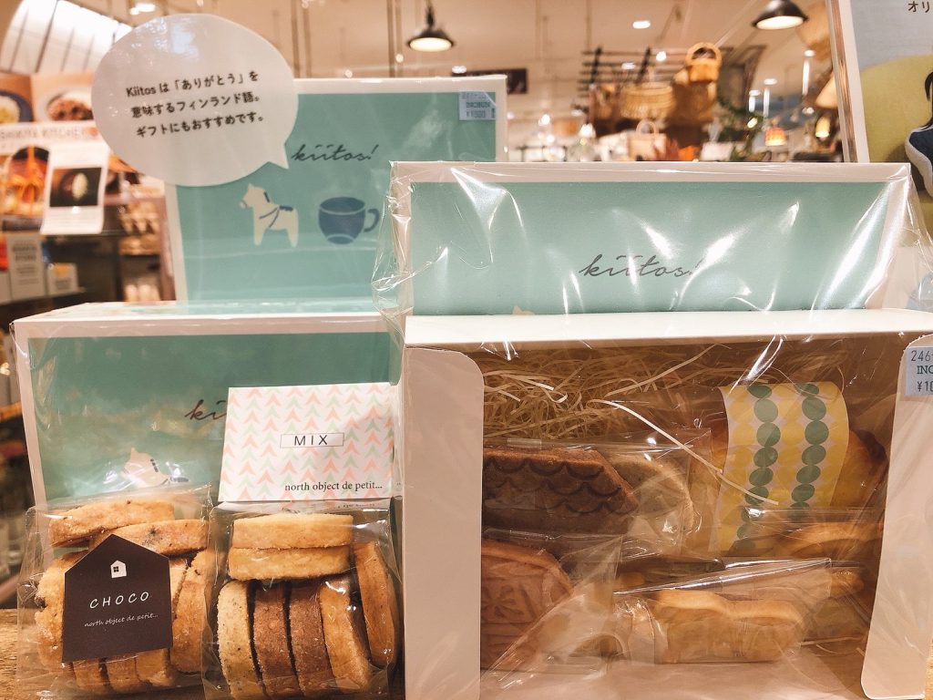 KIITOS-BOXはギフトに人気のクッキーとパウンドケーキのBOXギフトです。お一つ1,000円(税込)でこのボリューム!すぐに完売してしまうほど人気です!パッケージに書かれている「kiitos!」はフィンランド語で「ありがとう」を意味していてプレゼントにおすすめです。