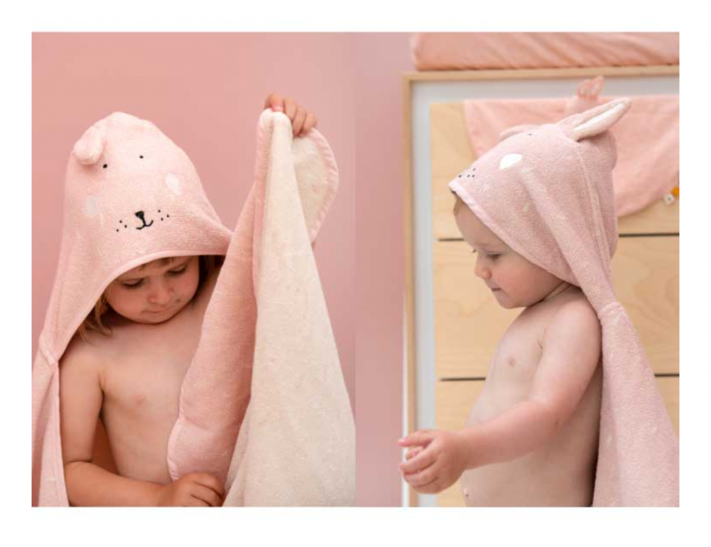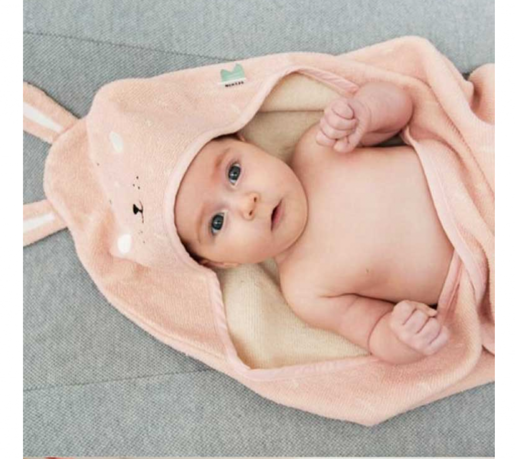 お風呂上がりの赤ちゃんの全身を優しく包み込み、フード付きなのでおくるみや、ブランケットとしても活躍出来ます。