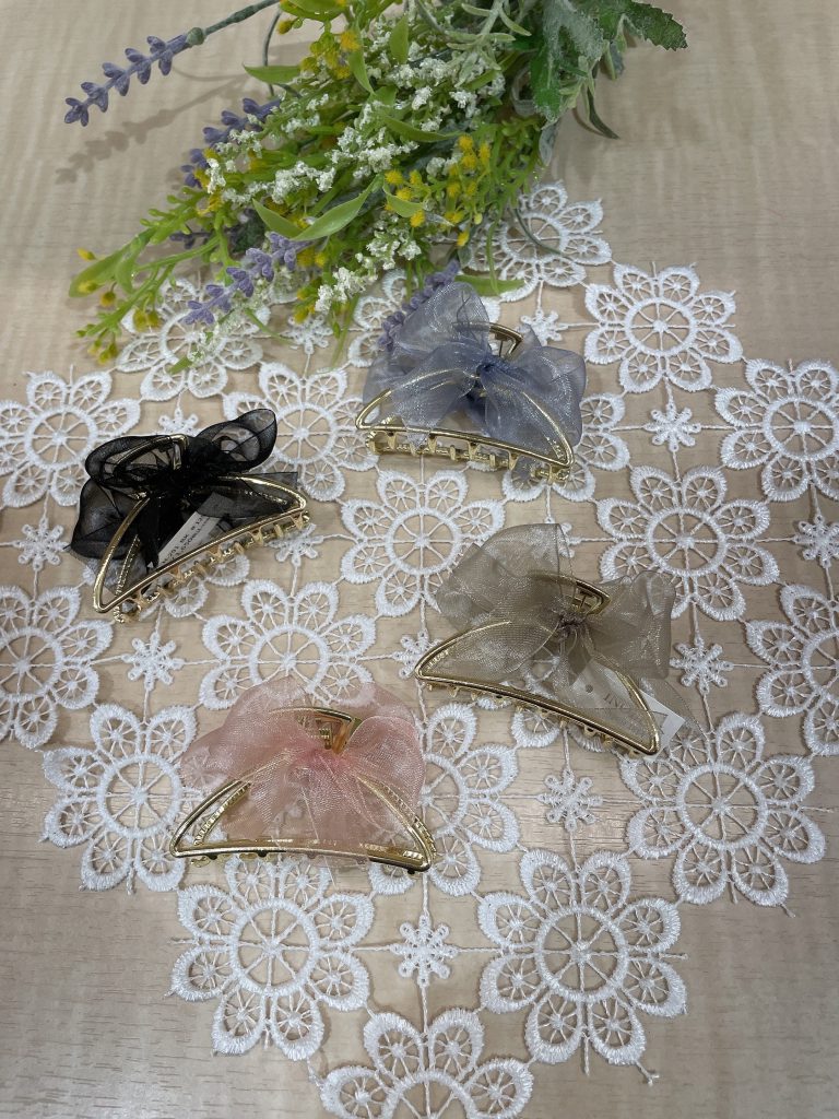 メタルにオーガンジーのリボンで、かわいさ際立つアイテム! おでかけの時に、ワンポイントになってくれます!