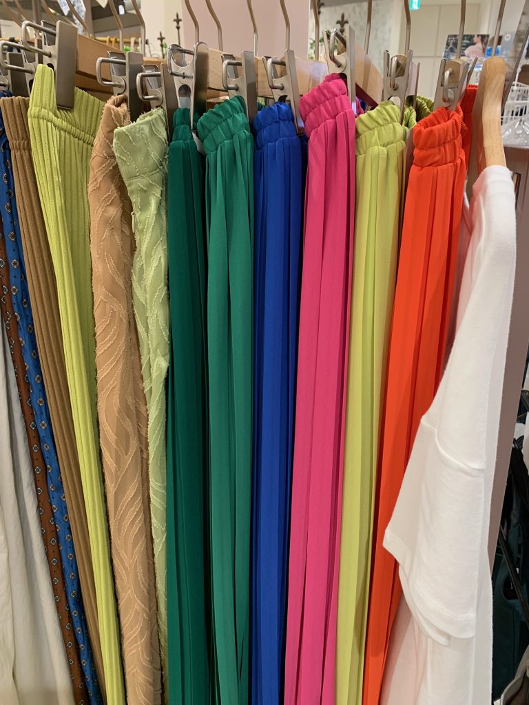 その日のコーディネートの主役になる鮮やかな色のボトムも沢山ございます。