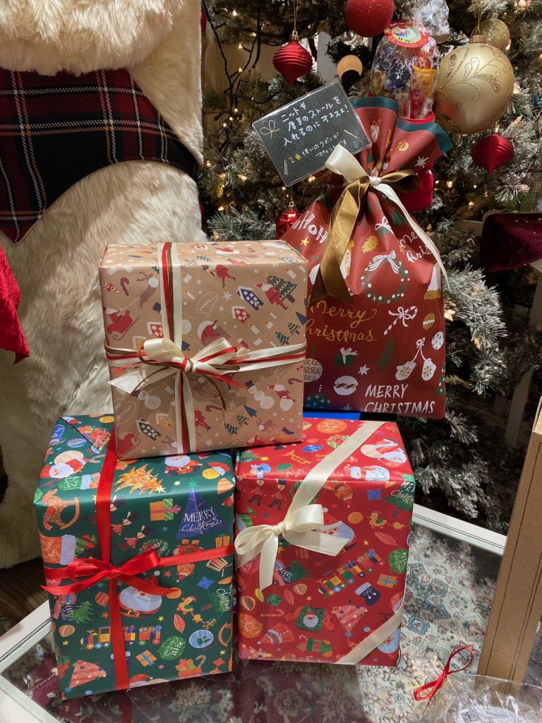 実は配送用のラッピングなのですが、クラフト+サンタクロースの組み合わせが素敵すぎて普通に使えないかな?と、思い選んでみました!