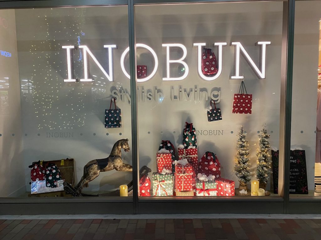 今年は駐車場側から見えるイノブンのウインドーもXmasラッピングで賑やかになりました!