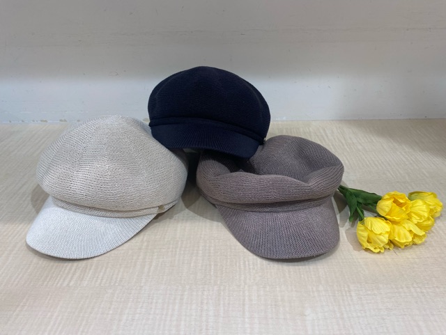 こちらのキャスケットは涼しい見た目の素材なので、春から夏までお使いいただけます(^.^)デニムなどのカジュアル、ボーイッシュスタイルと相性が◎です!