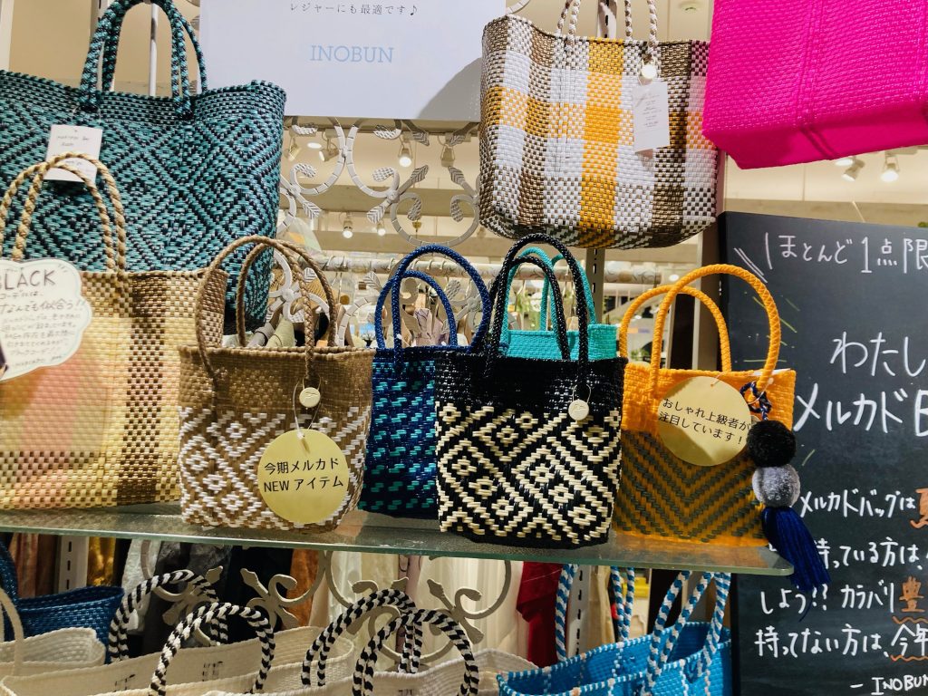 メキシコ生まれのプラスチック製の編みかごバッグです。