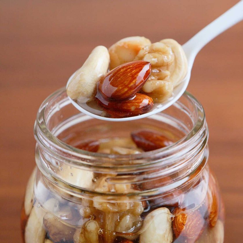 ナッツの蜂蜜漬けには、ビタミンや食物繊維、ポリフェノール、鉄分、アミノ酸など多くの栄養素が含まれており、体内の組織を健康に保つ効果があります。