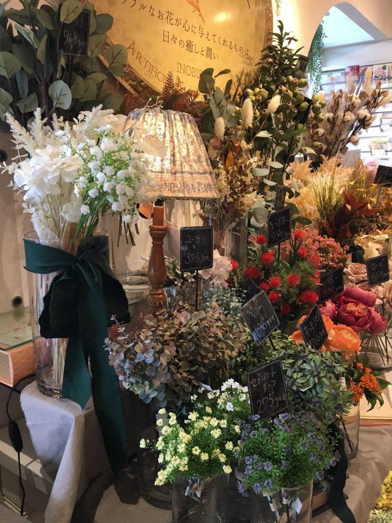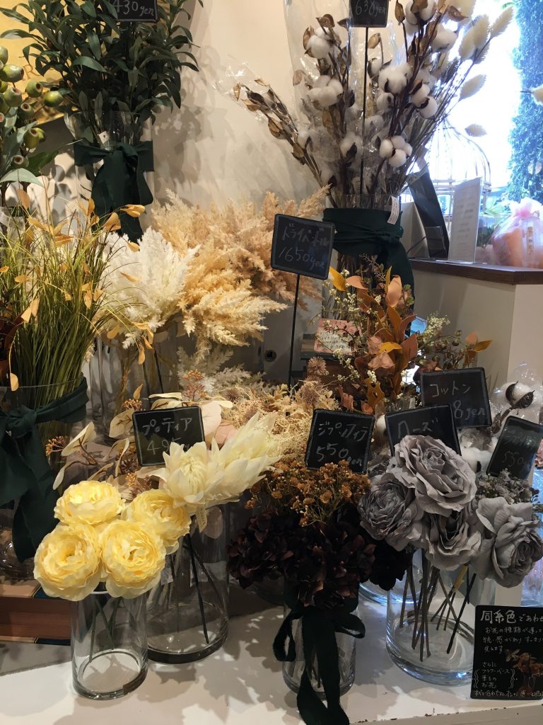 普段飾っている造花に少し紅葉感のあるようなものを足すだけで、秋の雰囲気がつくれます