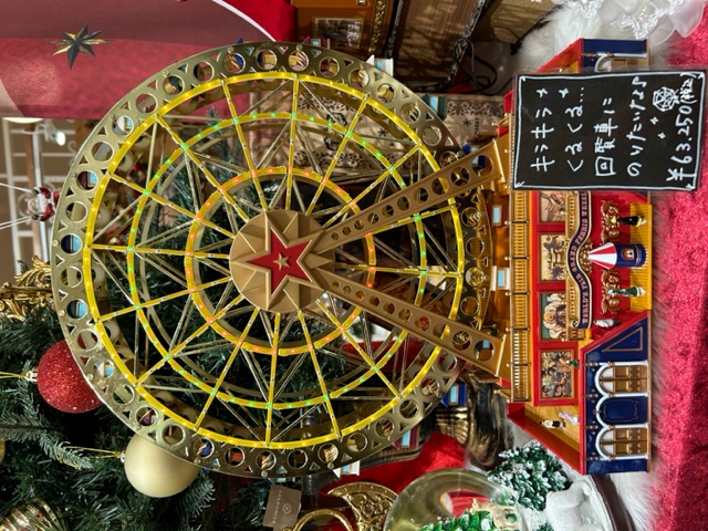 こちらは20個のゴンドラが周りライトが光る観覧車のメリーゴーランド。25曲のクリスマスソングと25曲のイヤーラウンドクラシックソングを聴くことができます。