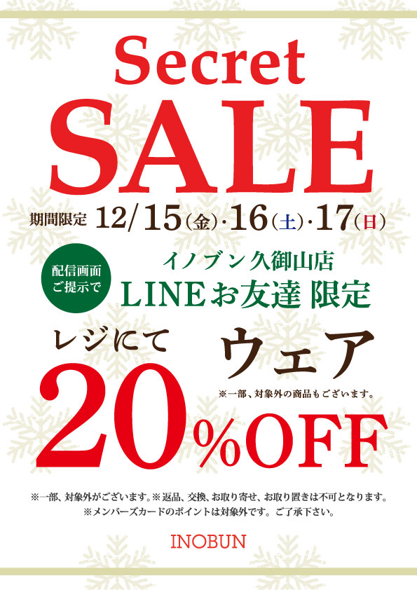 LINE会員様限定 特別冬のシークレットセールを開催致します!