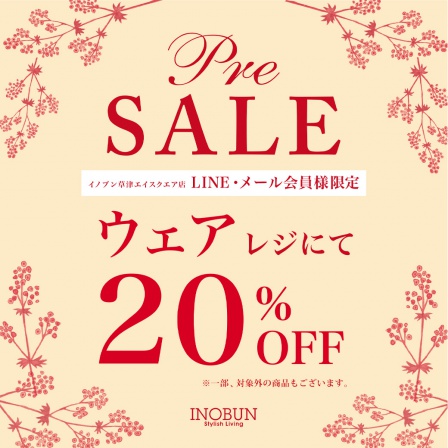 期間中、 LINE・メール会員様限定 で、ウェアをレジにて20%OFF致します♪
