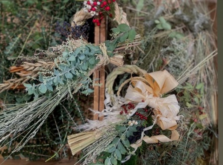 身近な草花と共に、季節を感じながらスワッグやしめ縄づくりを制作されています。