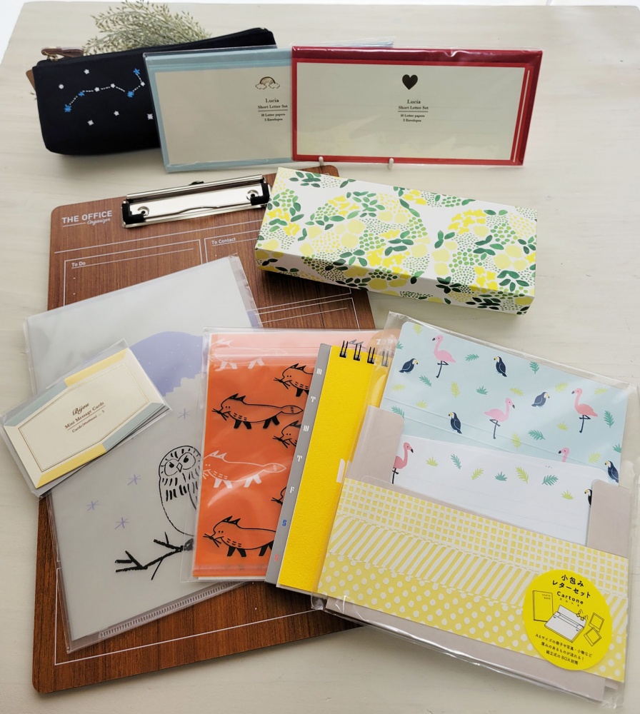 ボリューム満点!クリップボードやレターセット、ペンケースなどが入った大満足のセットです。