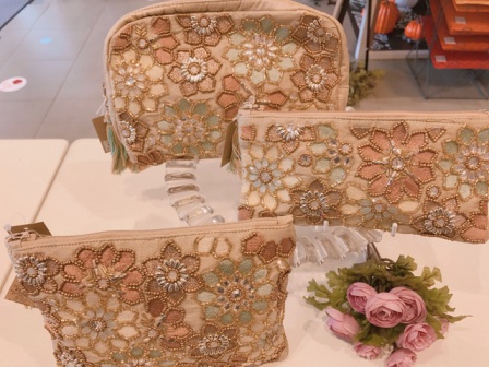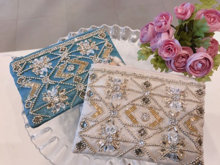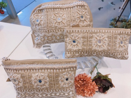そして今回ご紹介したいのは素敵なポーチがインドからたくさん入荷いたしました。大人気のビーズ刺繍ポーチです。