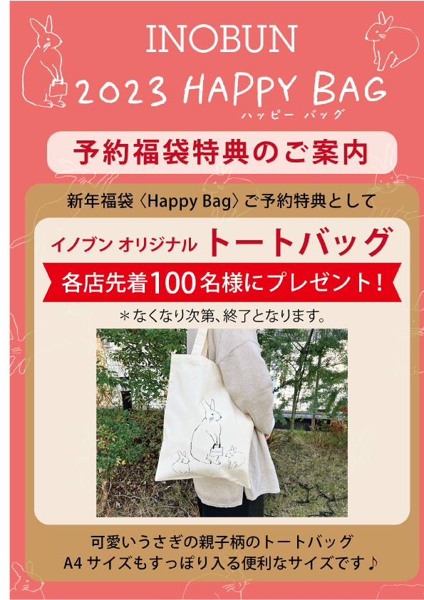 今回のご予約特典は、可愛いうさぎの親子がデザインされたイノブンオリジナルトートバッグです!