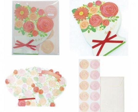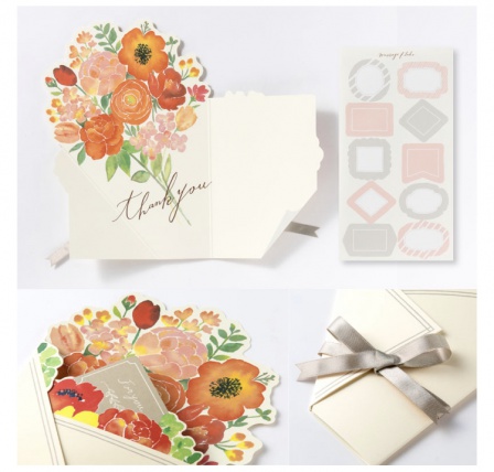 付属のメッセージシール(10名分)にも可愛い花束がデザインされています。贈る時に便利な封筒付き♪