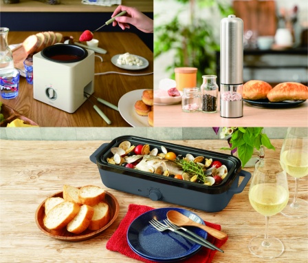 気軽にパーティー気分が楽しめるホットプレートとフォンデュブロック、憧れの電動ミルが入った大満足のセットです。