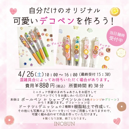 ミニチュア作家のまめちゅあさんをお招きしてデコペンづくりをお楽しみいただけます。