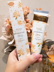 それぞれが金木犀の上質な香りを表しつつ、その香りに個性があります。この違いを確かめに、ぜひイノブン四条本店3階にお越しください。お待ちしております。