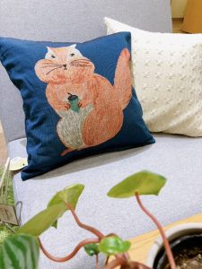 非常にインテリアに馴染みやすく、松尾ミユキさんの世界観に浸れるクッションカバーです。