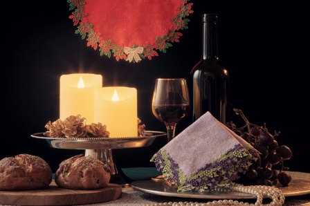 近沢レースシーズンハンカチ11月の「クリスマスリース」と「ワイン」が入荷いたしました。