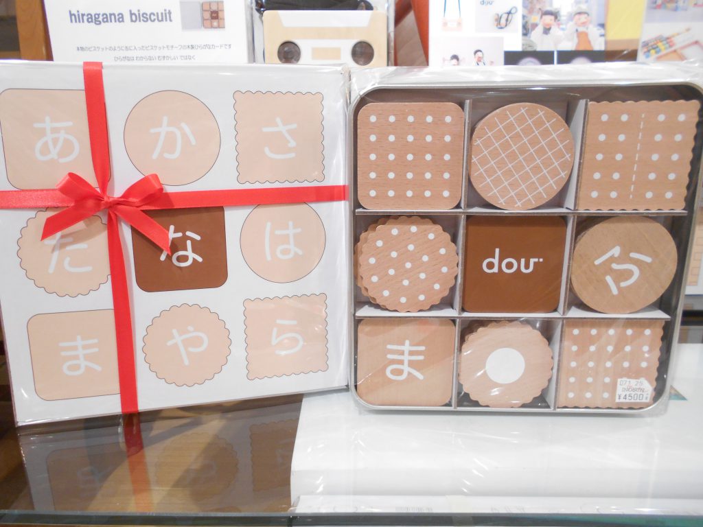 まるで本物のビスケット!のような木製のひらがなカードのおもちゃ。