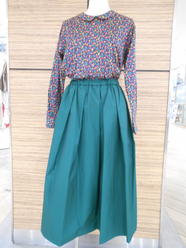 無地のスカートに合わせるだけで華やかになります