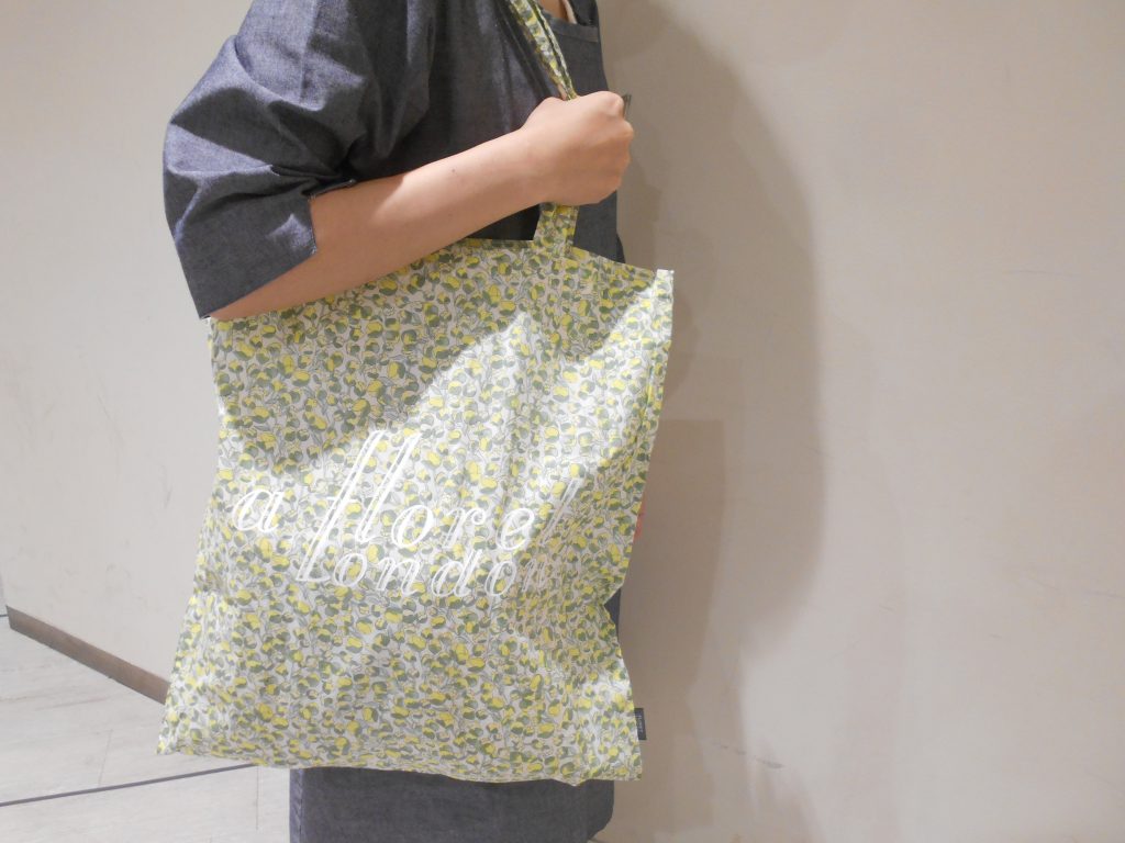 もう毎日のお買い物やお出かけには欠かせなくなりました、エコバッグ!みなさまもうお持ちですか?リバティのエコバッグは全体にお花柄が散りばめられていて、どこから見てもカワイイ!!持ち手も長く楽に肩から掛けられます。
