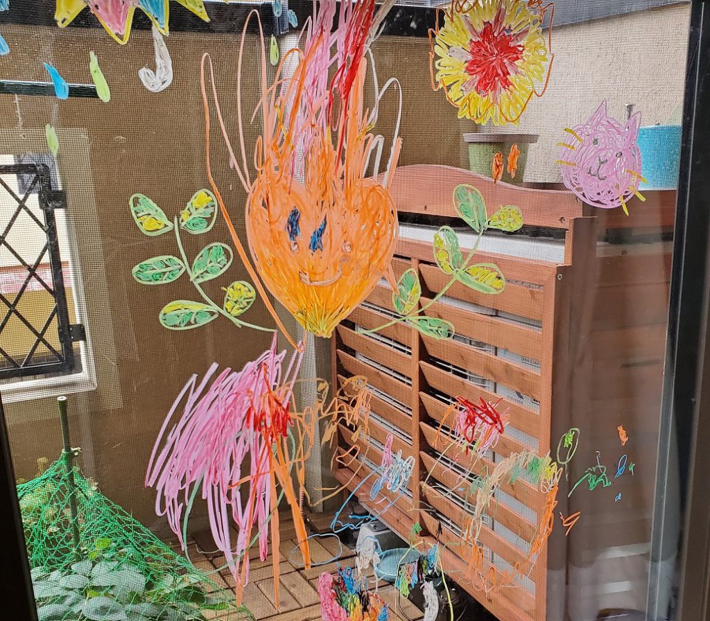 昨日はお家の窓にお絵描きをして楽しみました♪