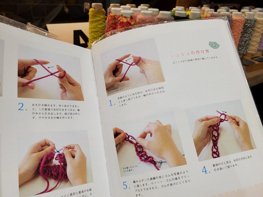 特別な道具無しで指編みでシュシュなんかも作れちゃいますよ(^^)