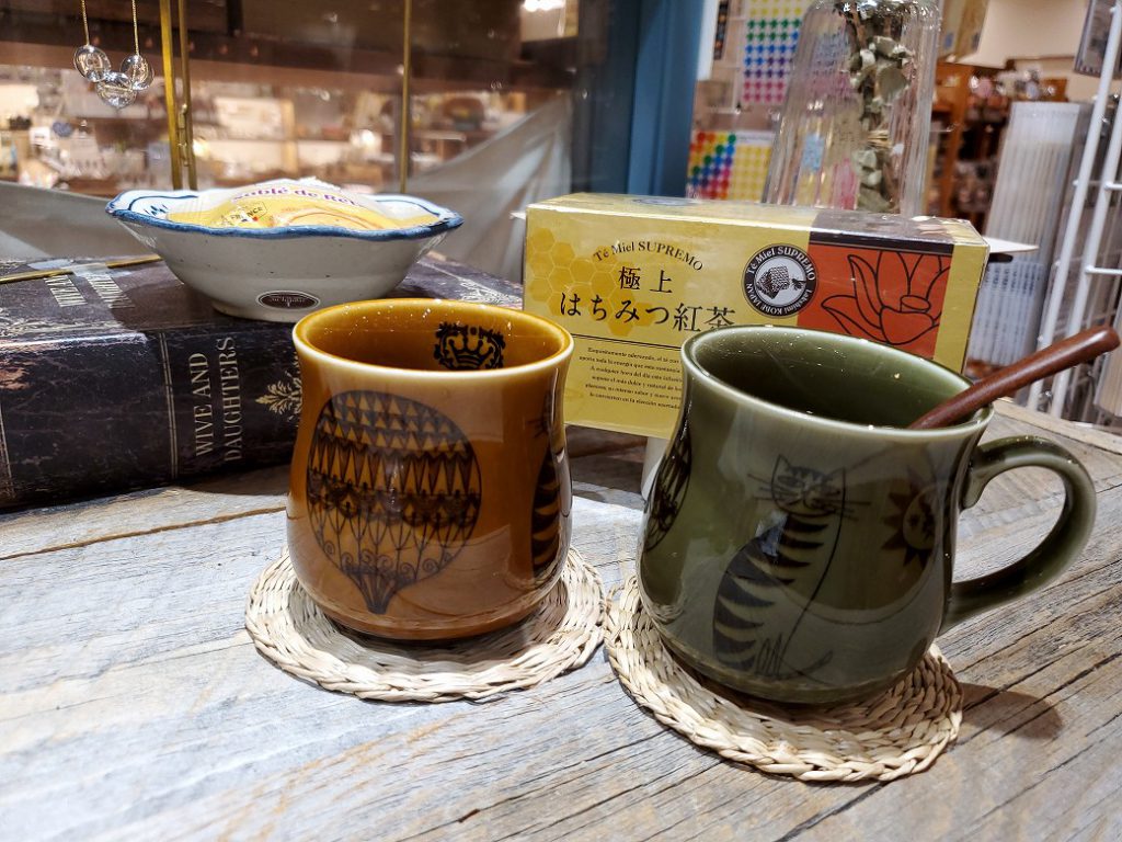 こちらはネコちゃんと気球がデザインされたマグカップ。ネコちゃんのなんとも言えない表情が可愛すぎます♡