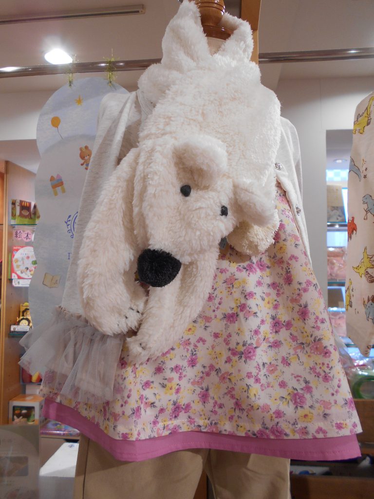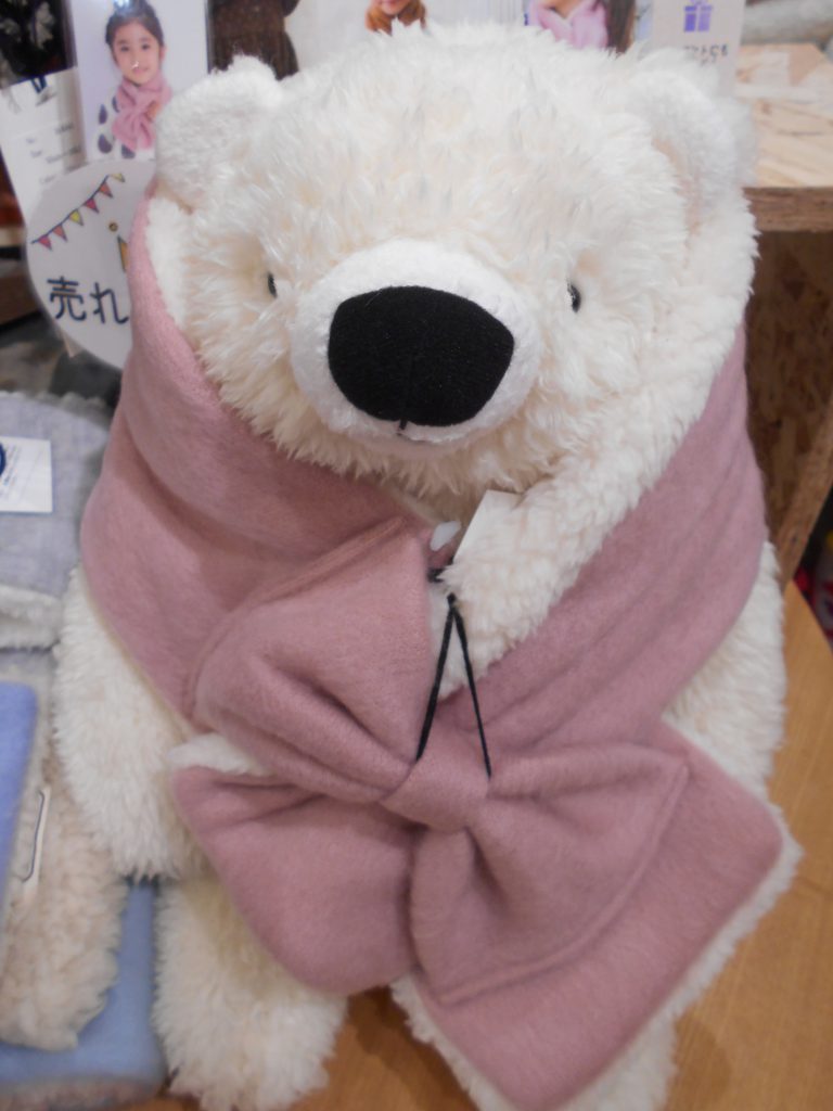 立体的なクオリティのマフラー。白くまといつも一緒。