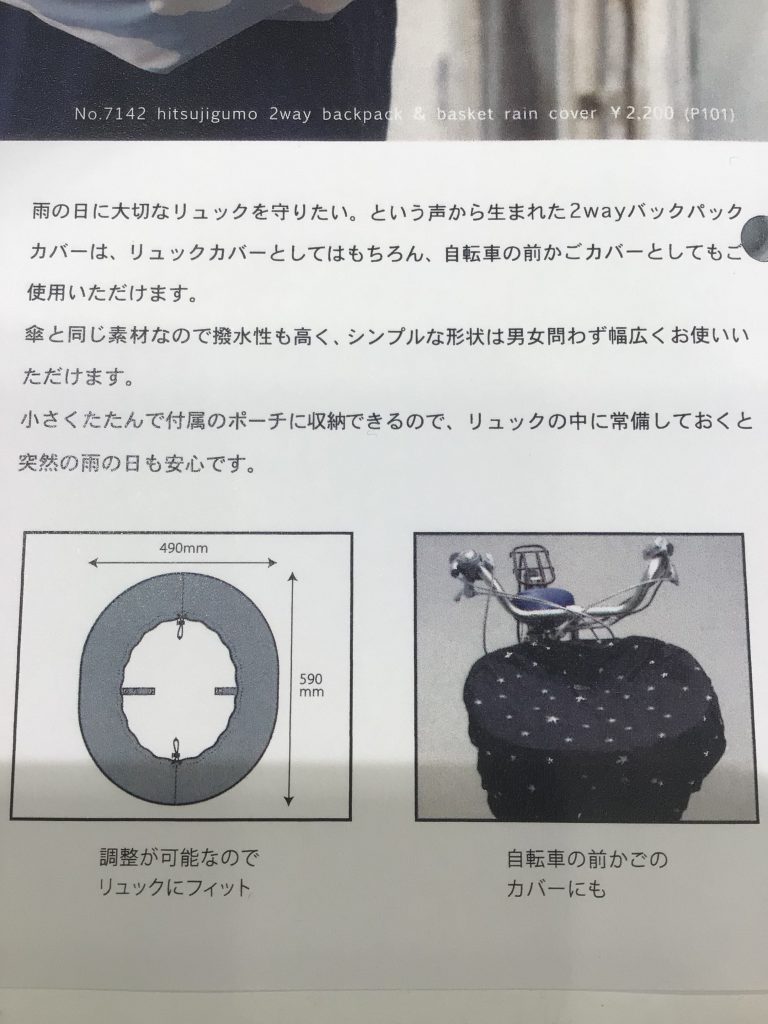 2WAYバックパックカバーで、リュックカバーとしても、自転車の前かごカバーとしても使っていただける優れものです。