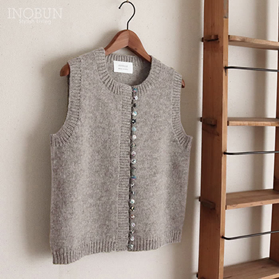 PERU KNIT ペルーニットベスト リバティくるみボタン ライトグレー