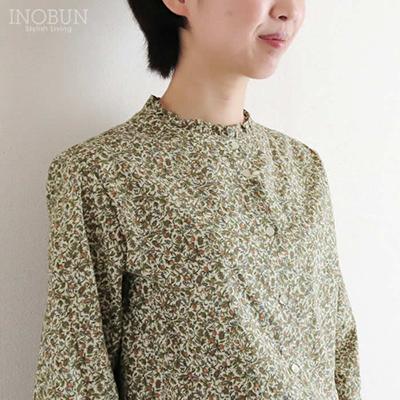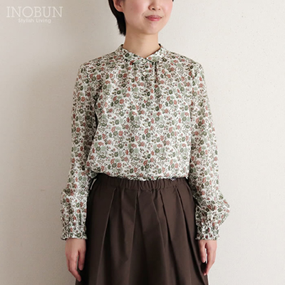 Parkes リバティ ちび襟 袖シャーリングブラウス CAPEL FLORET/24DU