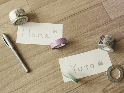 こんな風に、名前を書いた紙とお気に入りのマスキングテープを用意して