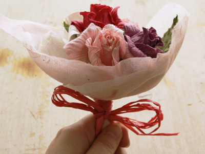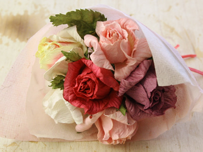 このブーケ、なんと紙素材なんです!紙で出来ているのに、