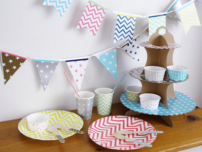 カップケーキを飾るスタンドをはじめ、フラッグ、ストローまで揃っていて、