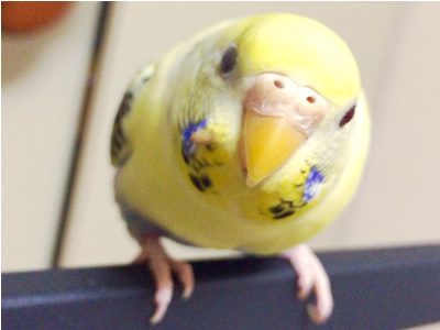 ほっぺたにおやつ(鳥用の麦)をつけてあそんでいたので、撮ってみました^^