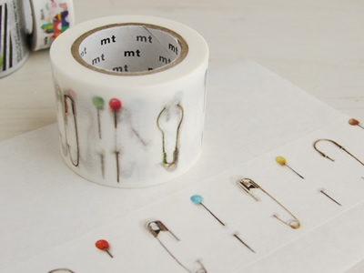 私が愛用しているのは安全ピン・マチ針の幅広タイプのマスキングテープです。